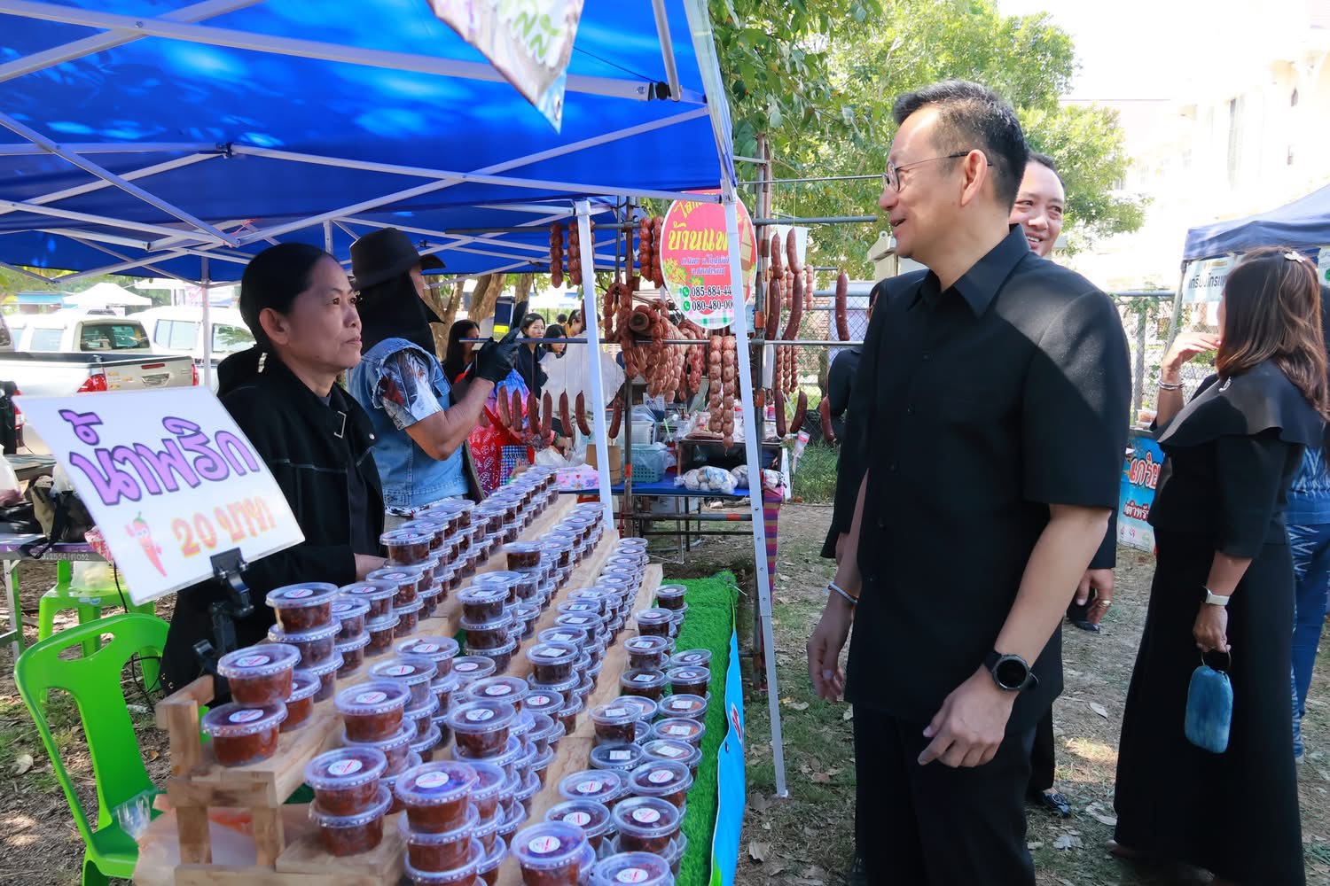 เป็นประธานในพิธีเปิดโครงการครั้งนี้ โครงการธงฟ้าราคาประหยัด มีเป้าหมายเพื่อช่วยลดภาระค่าครองชีพ ส่งเสริมให้ประชาชนสามารถเข้าถึงสินค้าคุณภาพในราคาย่อมเยา สร้างความมั่นคงทางเศรษฐกิจให้กับชุมชน ?????