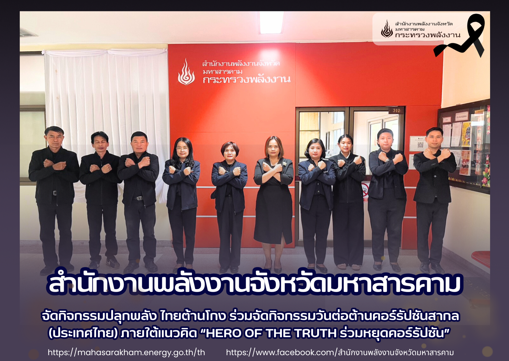 ??? พลังงานจังหวัดมหาสารคาม จัดกิจกรรมปลุกพลัง ไทยต้านโกง ? ร่วมจัดกิจกรรมวันต่อต้านคอร์รัปชันสากล (ประเทศไทย) ภายใต้แนวคิด “HERO OF THE TRUTH ร่วมหยุดคอร์รัปชัน”