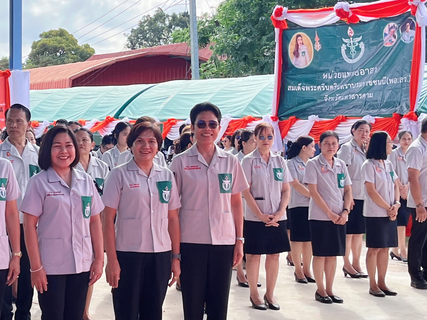 นางรัตนา ไชยดวงสี พลังงานจังหวัดมหาสารคาม พร้อมด้วยนางสาวภัชริยา ค้ำคูณ เจ้าพนักงานการเงินและบัญชีปฏิบัตคิงาน และเจ้า่หน้าที่ประสานงาน สำนักงานพลังงานจังหวัดมหาสารคาม เข้าร่วมจัดกิจกรรมในโครงการปกป้องและเชิดชู สถาบันพระมหากษัติย์ บำบัดทุกข์ บำรุงสุข สร้างรอยยิ้มให้ประชาชน และออกหน่วยแพทย์เคลื่อนที่ พอ.สว.จังหวัดมหาสารคาม ประจำเดือนธันวาคม ๒๕๖๘