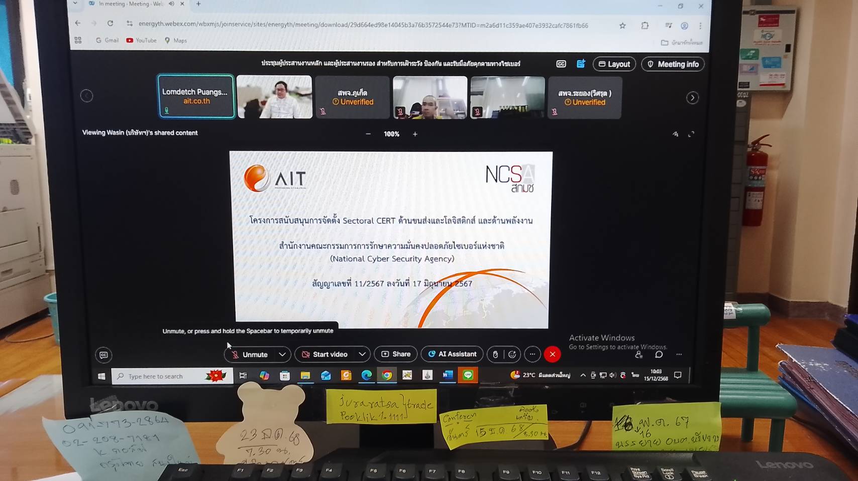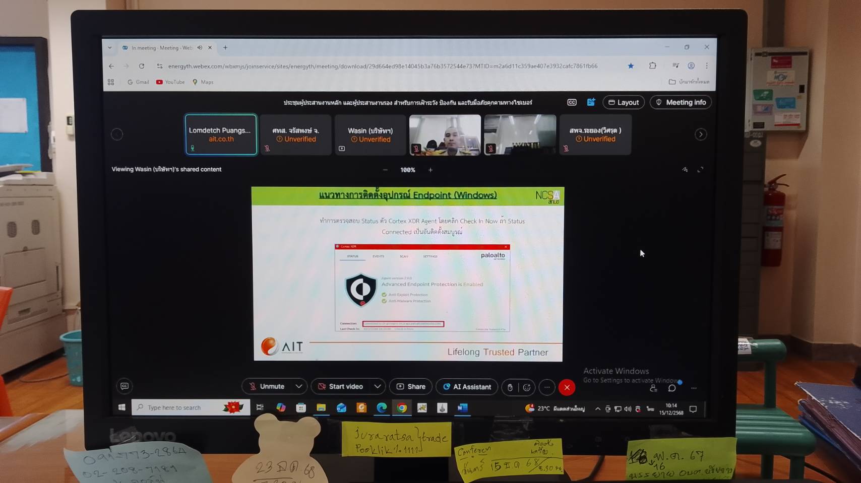 นางรัตนา ไชยดวงสี พลังงานจังหวัดมหาสารคาม มอบหมายให้นางสาวพิมพ์รวี ศิริสุรักษ์ นักจัดกาสรงานทั่วไปชำนาญการ และนาญธวัช วรนาม เจ้าหน้าที่ประสานงาน สำนักงานพลังงานจังหวัดมหาสารคาม เข้าร่วมประชุมการติดตั้งระบบป้องกันภัยคุกคามทางไวเบอร์สำหรับคอมพิวเตอร์ (EndPoint) รูปแบบออนไลน์ (Webex) ผ่านทาางระบบอิเล็กทรอนิกส์