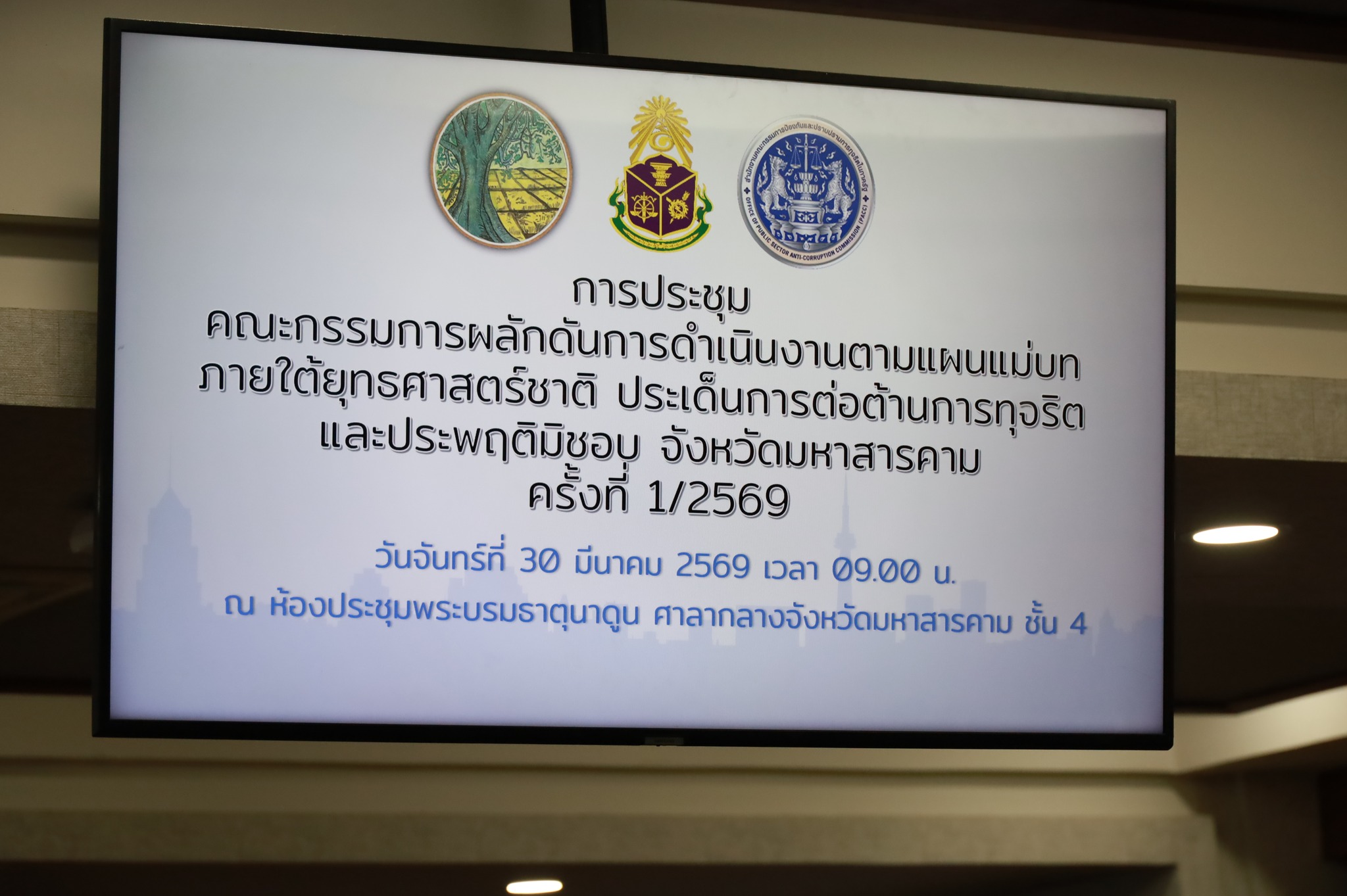 วันจันทร์ที่ 30 มีนาคม 2569 เวลา 09.30 น. ณ ห้องประชุมพระบรมธาตุนาดูน ชั้น 4 ศาลากลางจังหวัดมหาสารคาม