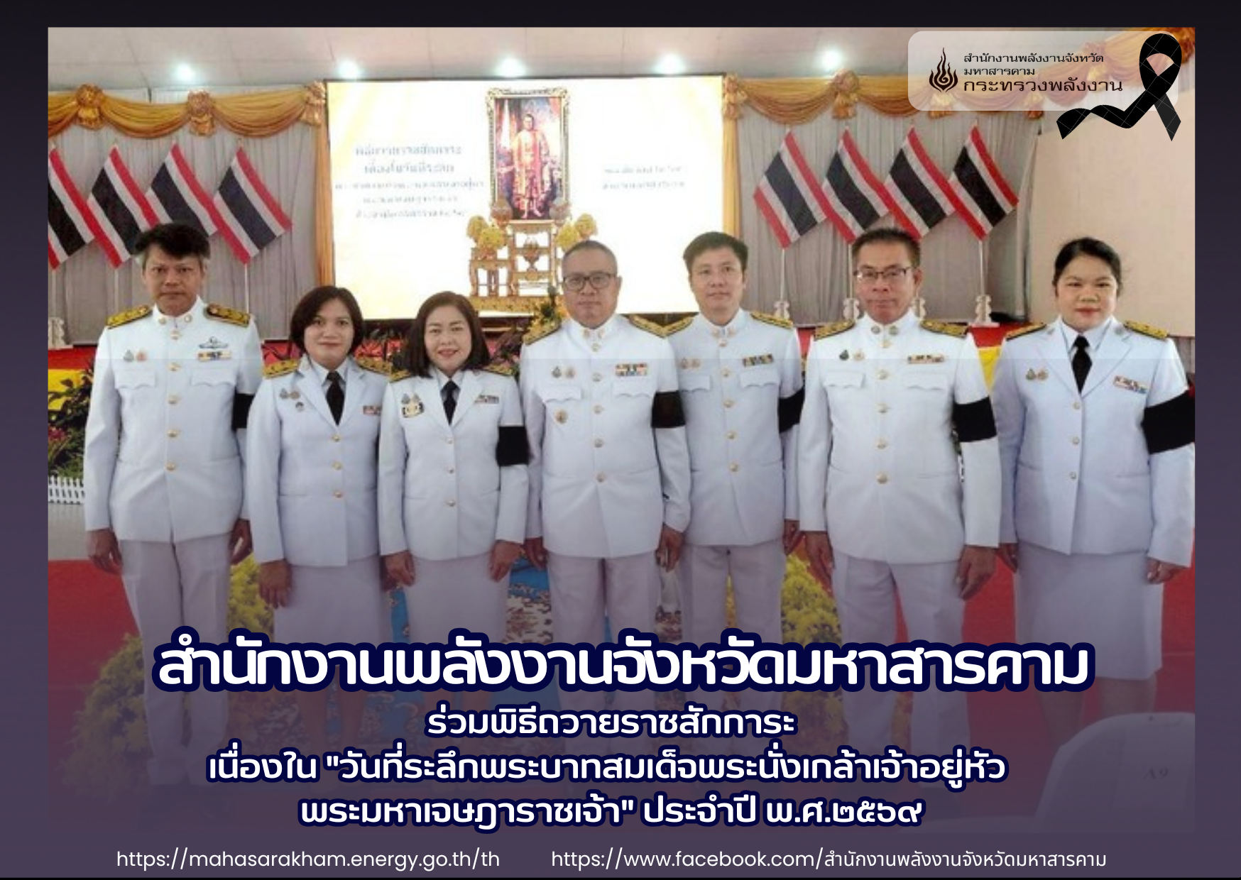 "พลังงานจังหวัดมหาสารคาม ร่วมพิธีถวายราชสักการะเนื่องใน "วันที่ระลึกพระบาทสมเด็จพระนั่งเกล้าเจ้าอยู่หัว พระมหาเจษฎาราชเจ้า" ประจำปี พ.ศ.๒๕๖๙"