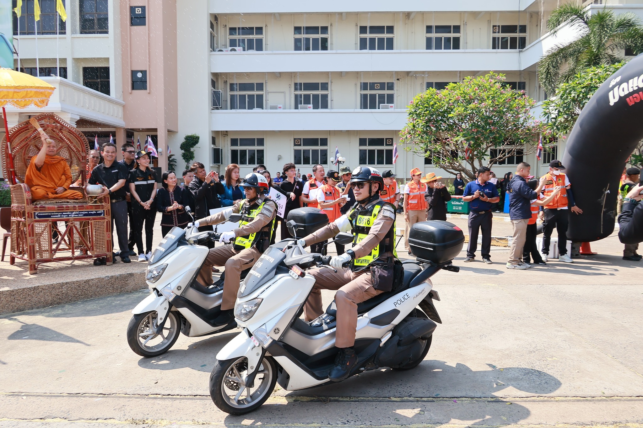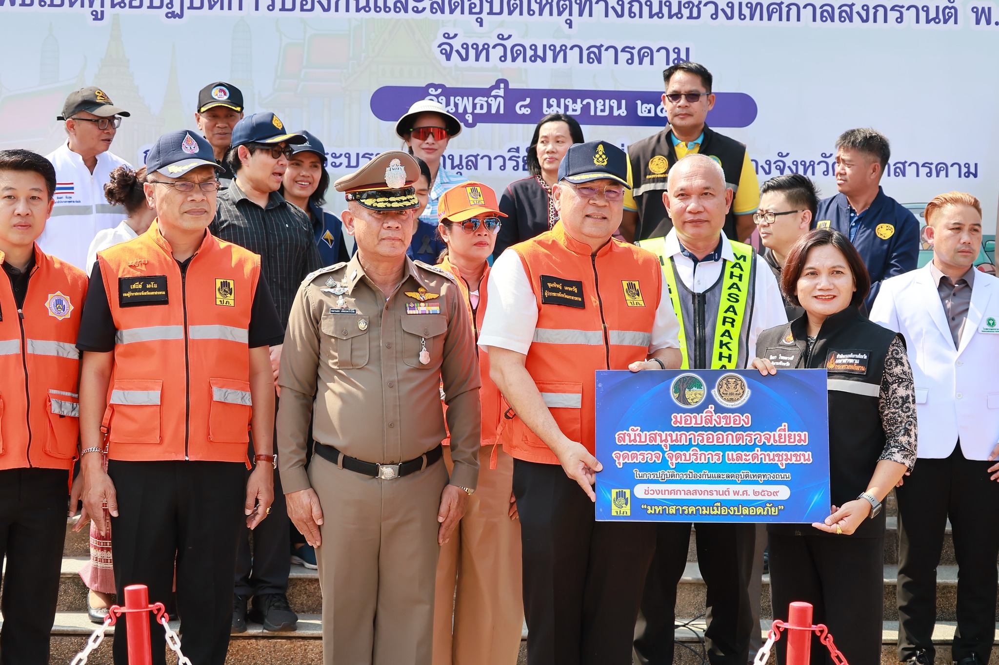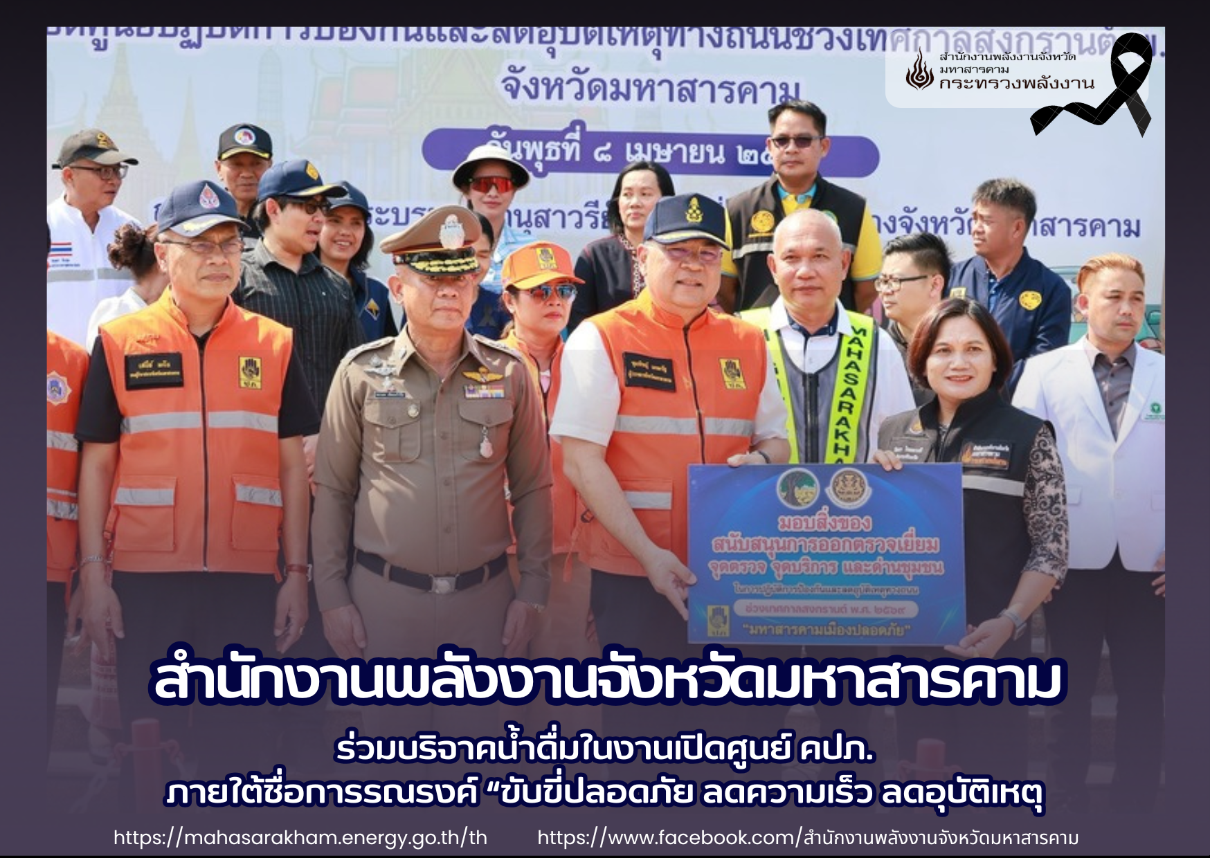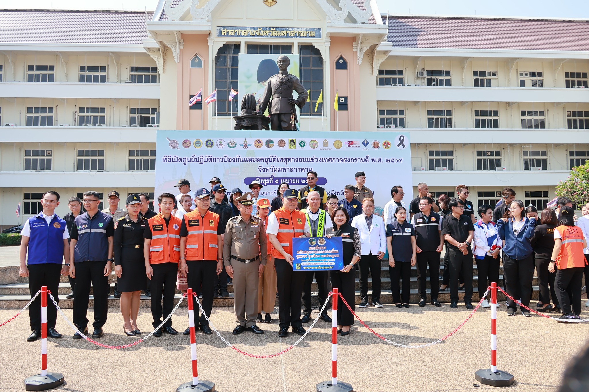 นางรัตนา ไชยดวงสี พลังงานจังหวัดมหาสารคาม พร้อมด้วยเจ้าหน้าที่ สำนักงานพลังงานจังหวัดมหาสารคาม เข้าร่วมพิธีเปิดศูนย์ปฏิบัติการป้องกันและลดอุบัติเหตุทางถนนช่วงเทศกาลสงกรานต์ ปี ๒๕๖๙ ภายใต้ชื่อการรณรงค์ “ขับขี่ปลอดภัย ลดความเร็ว ลดอุบัติเหตุ”